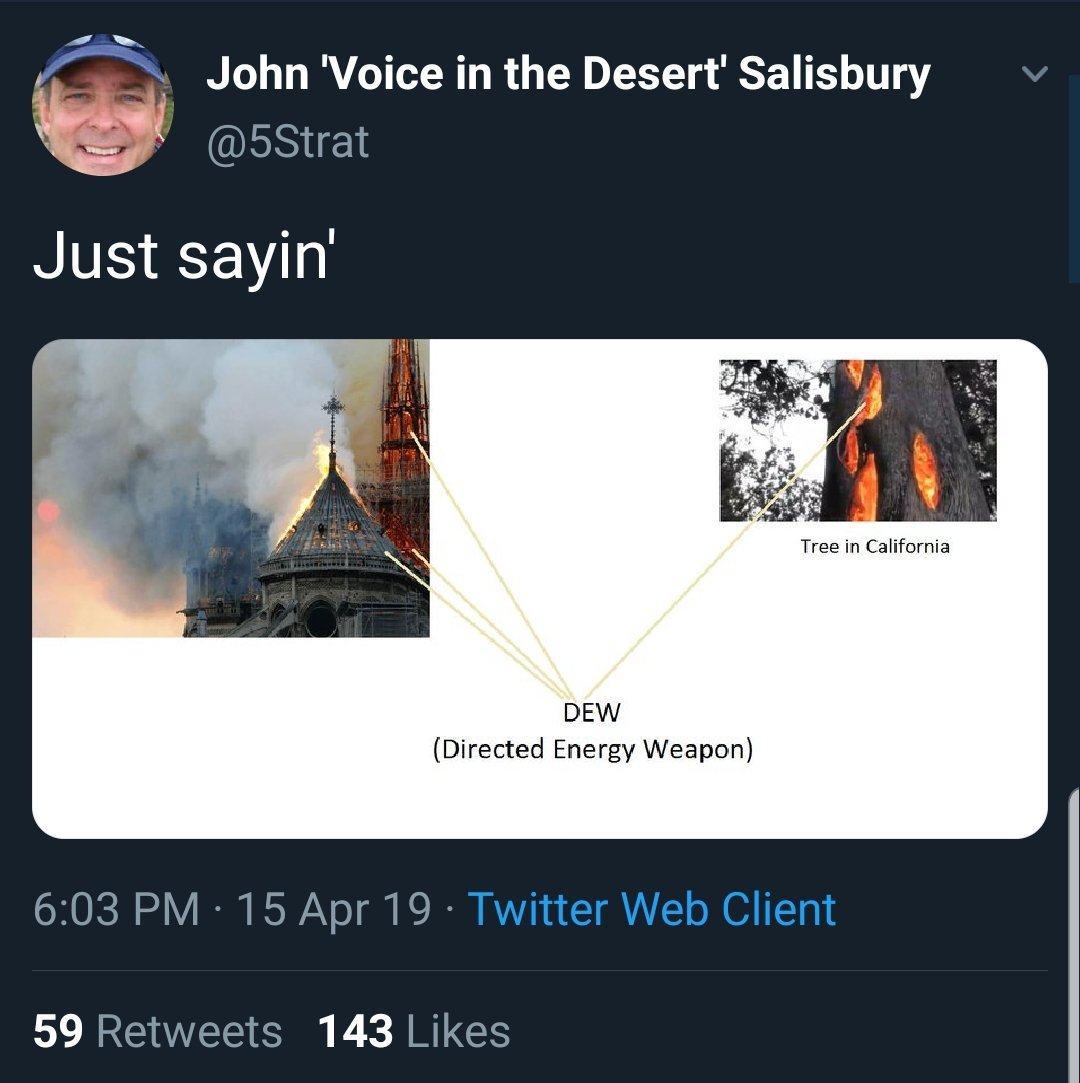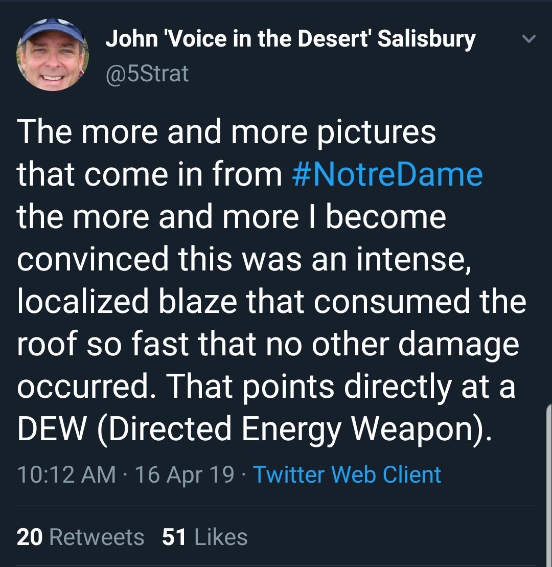 Possible D.E.W. Direct Energy Weapon used to start Notre Dame fire.