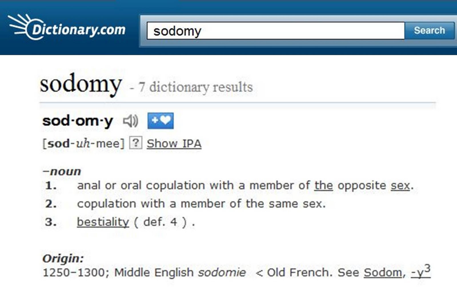 1. Sodomy is a sin.   Similar to the meaning of Beor (Balaam’s father), the Hebrew word for Sodom literally means “burning”. Sodomy is defined as “anal or oral copulation with a member of the opposite sex; copulation with a member of the same sex; or bestiality.” The act is considered sodomy even when it pertains to the opposite sex. Heterosexuals who participate in this act are sodomites by the very definition of the word. It wouldn’t take long in reviewing the Scriptures to understand how God feels about sodomy. The Bible is not silent on this topic.