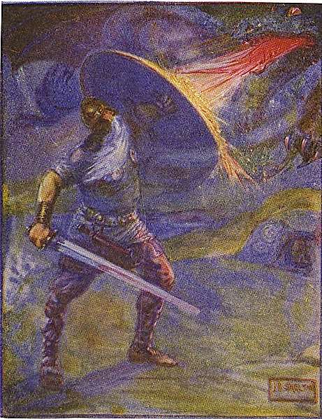 J.R.R. Tolkien drew on Beowulf when he imagined Smaug, the fiery dragon of The Hobbit, who took control of the dwarfs’ hoard. Tolkien added a detail from the most famous dragon of Old Norse legend – Fáfnir. This dragon also lies on a vast pile of treasure, one which, in the hands of the hero Sigurd who slays the monster, is later designated as the famous Rhine-gold. Fáfnir, like Tolkien’s Smaug, can also talk. The hero Sigurd fatally wounds Fáfnir, and the dying dragon warns him against treachery, communicates arcane mythological knowledge, and prophesies disaster for the hero if his counsel is not heeded.