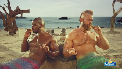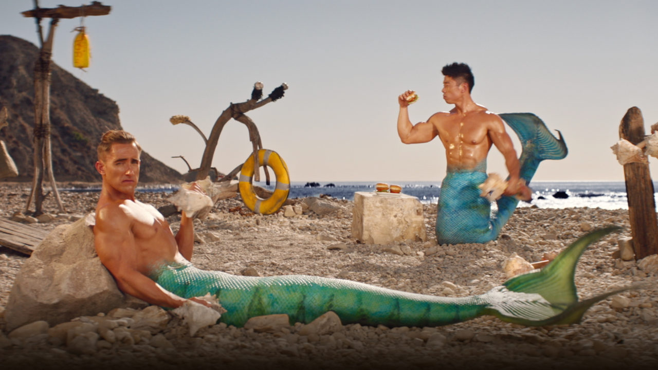 In Mer-Bros, self-satisfied muscular menwith mermaid tails lift shell weights and eat their protein, in the form of Gorton’s fish sandwich, while deadpanning at the camera, “You know Mer-Bros aren’t born with this physique…we still have to eat right.”